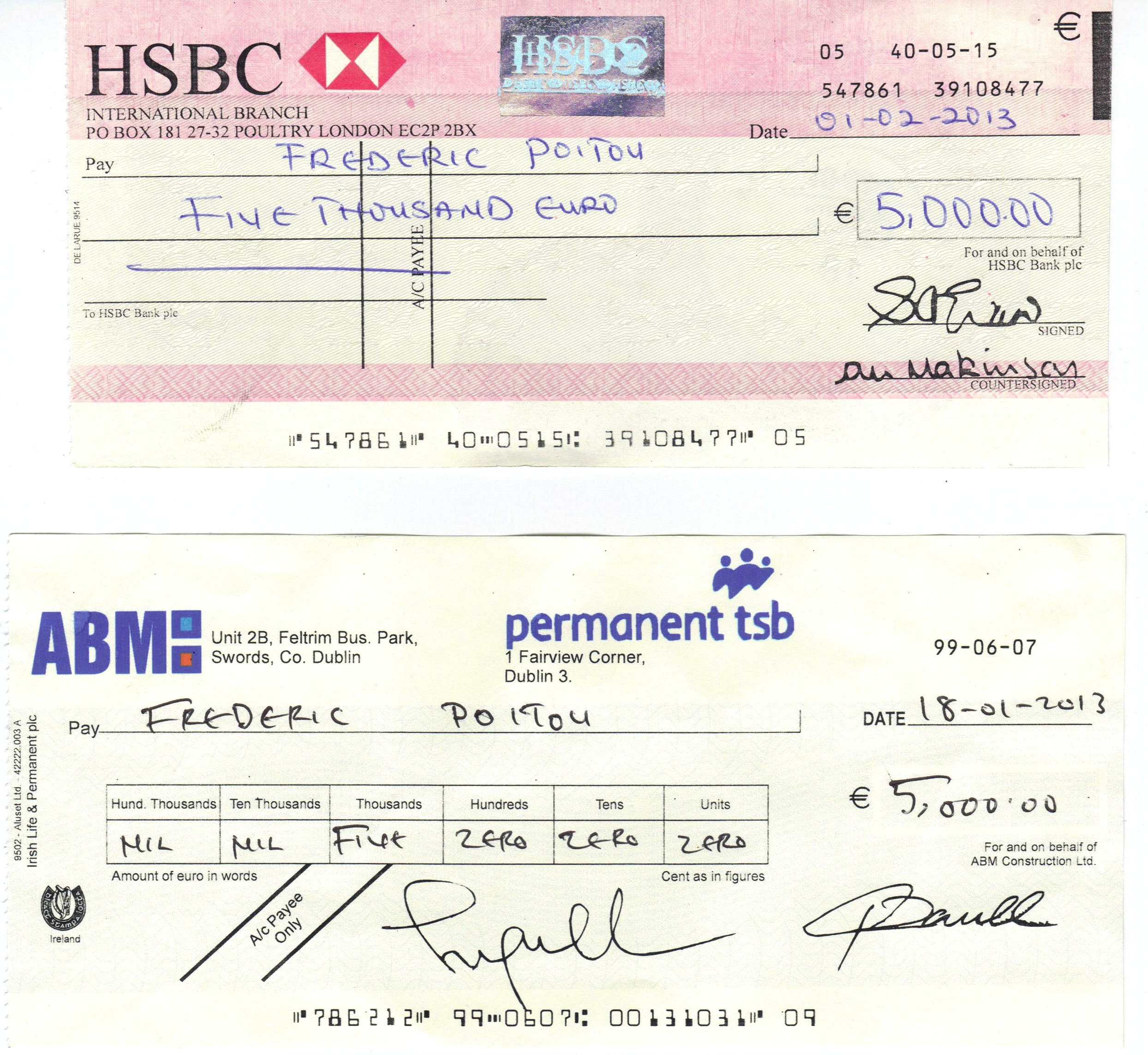 Je me suis amusé à donner suite à cette proposition faite, l’une par un citoyen chypriote, l’autre par un Irlandais, juste pour recevoir les chèques ! Evidemment, je n’ai pas envoyé de mandat Western Union, et je n’ai pas donné ma voiture. Mais je trouvais le jeu amusant. Ca m’a permis de récupérer deux faux chèques.
