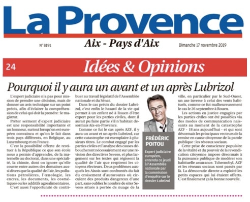 Comme ce fut le cas après AZF, il y aura un avant et un après Lubrizol car cette catastrophe est exemplaire à plusieurs titres. Le combat engagé par les parties civiles et l’analyse des causes déboucheront nécessairement sur une révision des directives Seveso, et plus largement sur les textes qui régissent la qualité de l’Air que respirent les citoyens-électeurs. Deux problèmes auxquels les aixois sont confrontés du fait du croisement d’autoroutes où circulent des produits dangereux d’une part, et le nombre des sites Seveso situés à portée de nuage de la ville en particulier par le Sud-Ouest, un axe inverse à celui des vents habituels, comme ce fut malheureusement le cas le 26 Septembre à Rouen.